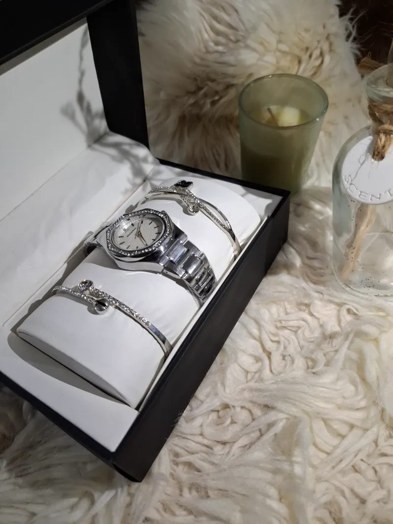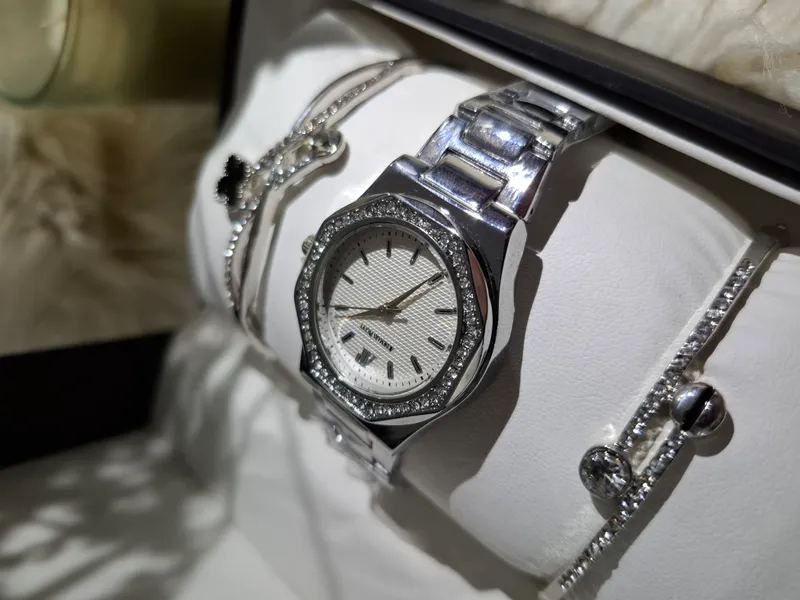 تتميز الساعة بلون فضي راقٍ يعكس الفخامة والتفرد، مما يجعلها خياراً مثالياً لإطلالاتك اليومية أو مناسباتك الخاصة.