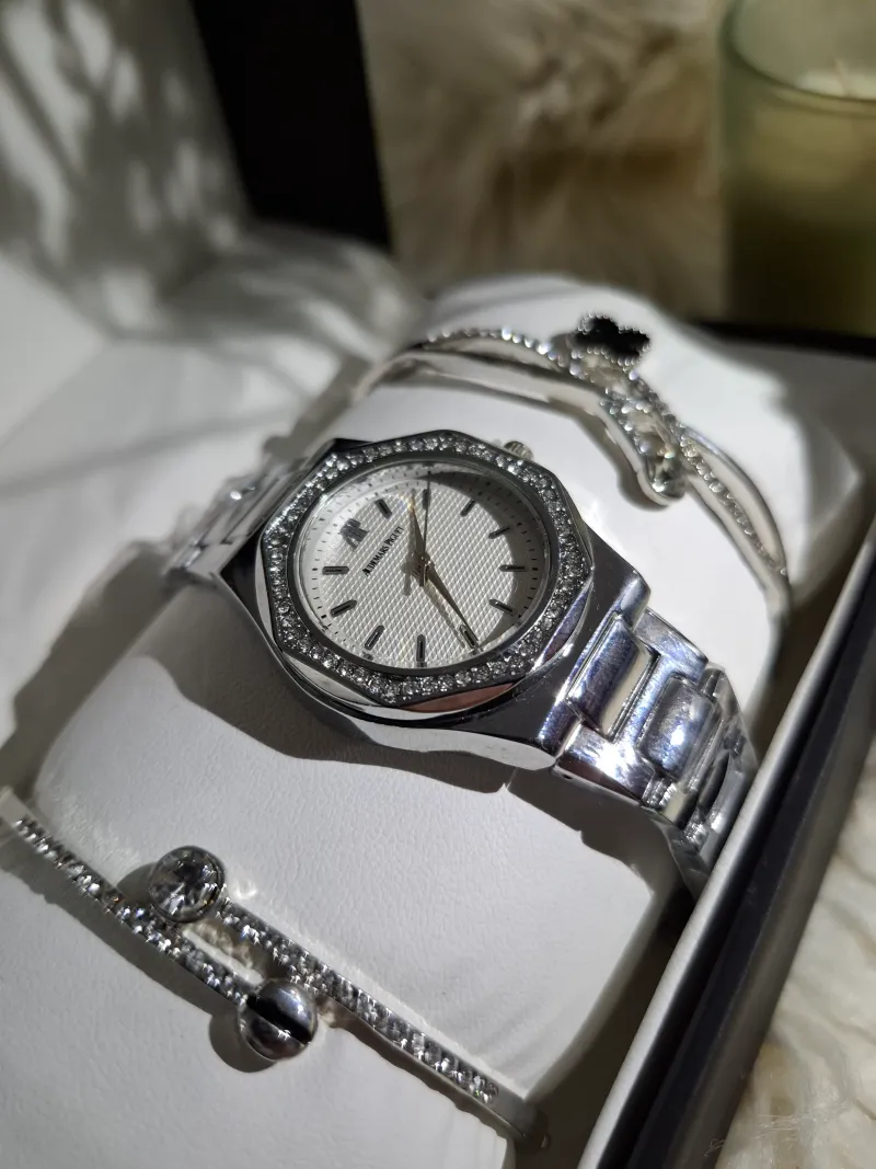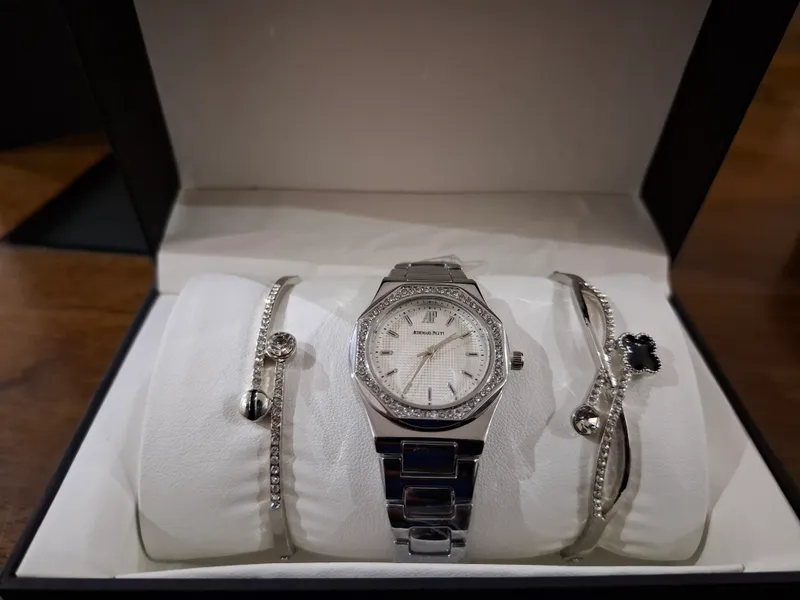 "تألقي مع ساعة Audemars Piguet الفاخرة بتصميمها الفريد خماسي الشكل الذي يجمع بين الابتكار والأناقة.